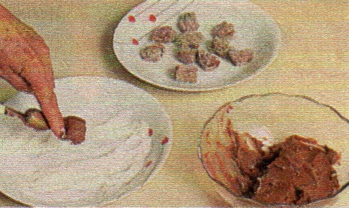 9. Retire as trufas da geladeira; elas devem ser banhadas no chocolate derretido. Escorra bem, deixe secar e envolva-as numa camada de chocolate em pó.