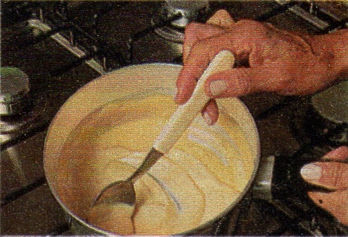 4. Quando o chocolate derreter, acrescente a essência de amêndoas. Despeje o creme numa tigela de vidro e leve à geladeira.