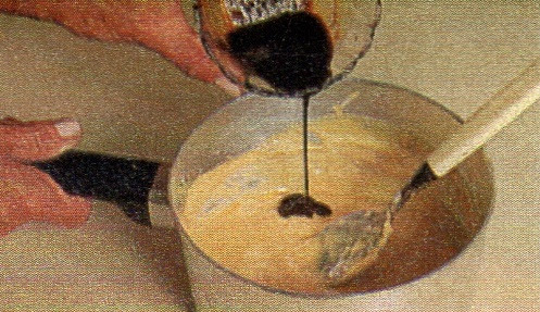2. Quando levantar fervura, retire a panela do fogo e acrescente a manteiga. Numa vasilha, dissolva o café com o conhaque e despeje na panela. mexa bem.